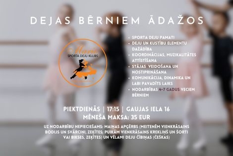 Uzņemam bērnus sporta dejās nodarbībām Ādažos vecumā no 4-7 gadi!